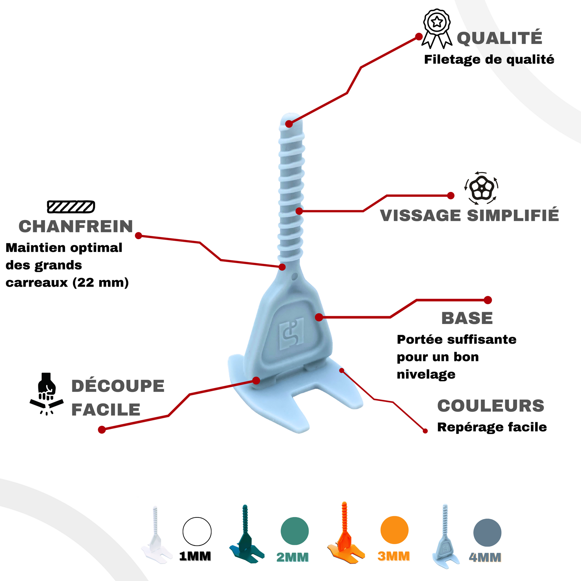 500 Croisillons Carrelage Autonivelants XL - 4 mm - Shaffer Pro