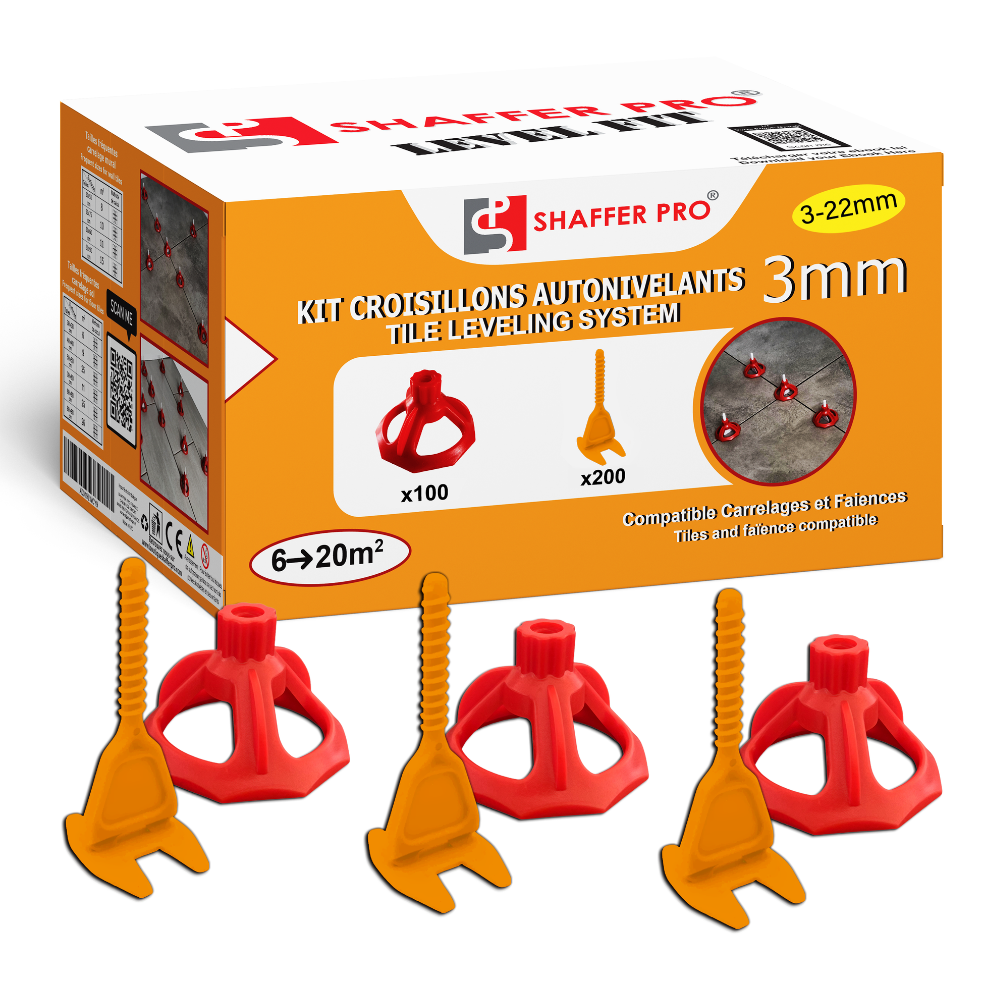 Kit de 200 Croisillons + 100 Cadrans - Carrelage Autonivelants XL - 3 mm - Shaffer Pro