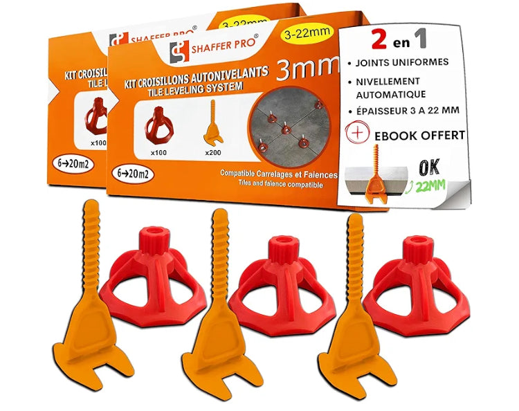 Kit de 400 Croisillons + 200 Cadrans - Carrelage Autonivelants XL - 3 mm - Shaffer Pro