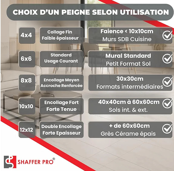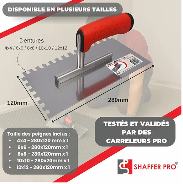 Platoir dentée à colle/mortier - 28 x 12 cm - Denture 6 x 6 - Shaffer Pro