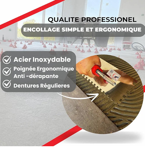- Polyvalence : Ce platoir permet une application parfaite des colles, avec une distribution uniforme de l'adhésif sur une grande surface, idéal pour le carrelage de grandes dimensions.